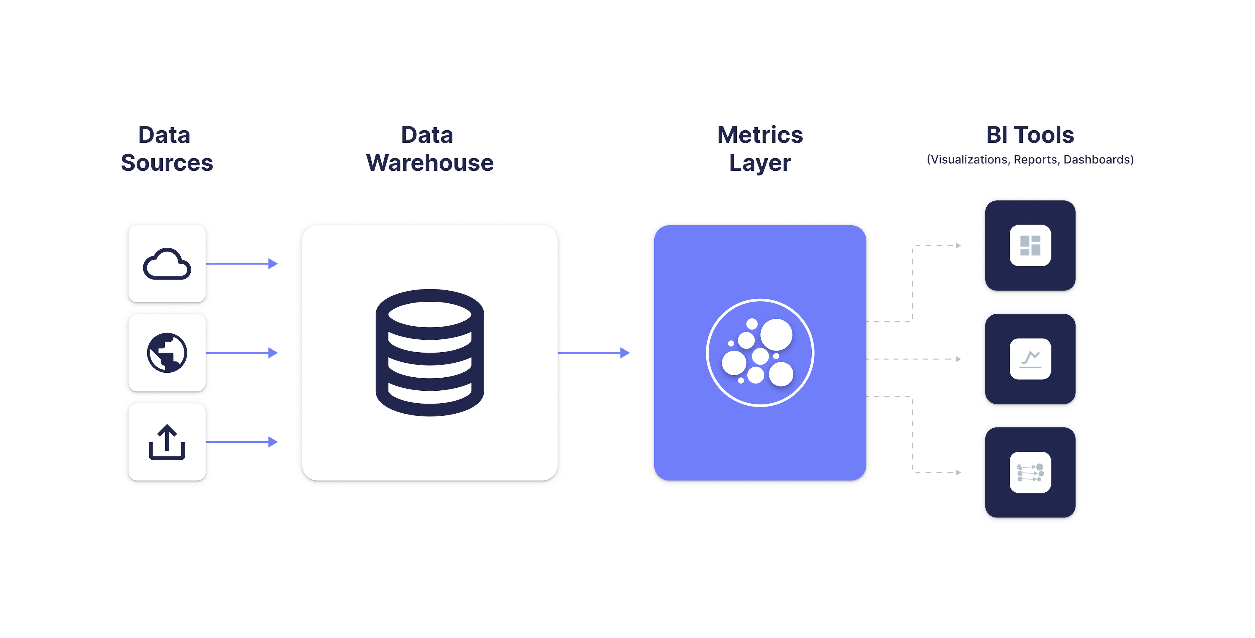 Once a metric is defined, calculated, and stored in the metrics layer, it can be used across an almost endless number of consumption end-points (aka headless BI). Since it’s being managed and stored in a single location, a metrics layer ensures 100% consistency. This centralized model ensures that everyone, regardless of which department they work in, uses the same data, resulting in more effective decision-making.